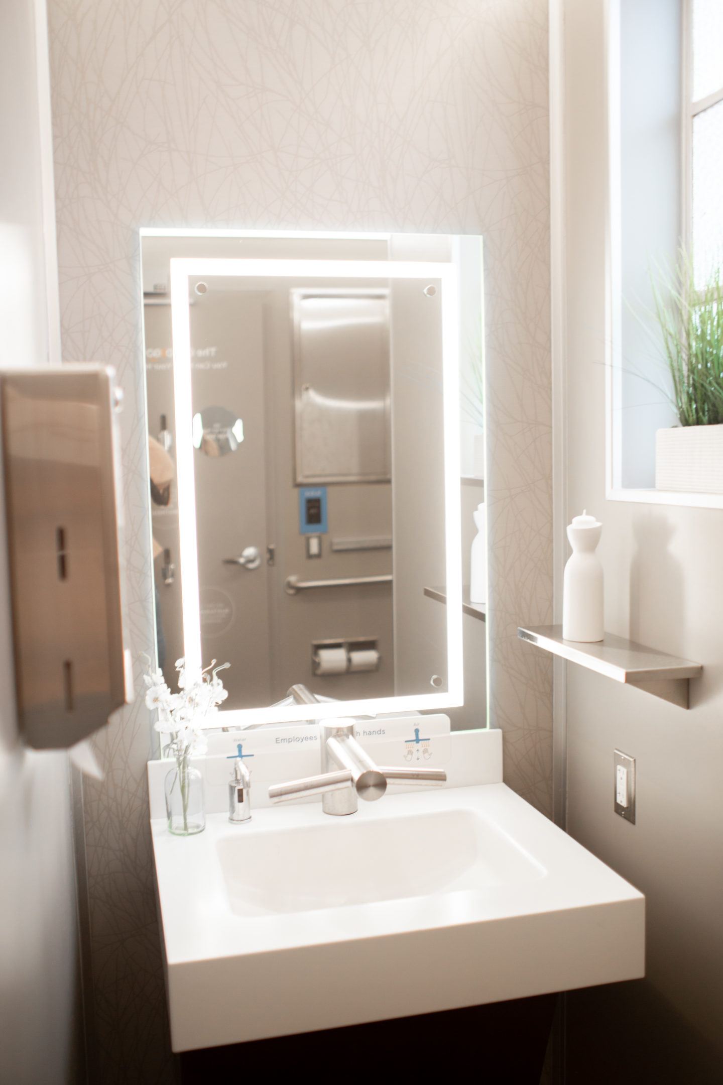 Download it from the app store + sign up for an account – it’s free right now! When you gotta go, open the app and locate a bathroom near you. Look for a solid green map pin. Join the virtual queue – no need to hover by the door. The app will tell you when it’s your turn to use the bathroom and you’ll use it to open the door! When inside, you’ll quickly notice how everything is hands-free technology, which keeps the bathroom really clean. When you’re done, wave your hand by the exit button and leave.