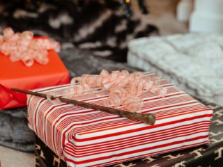 I brought the wrapping paper to wrap a bunch of Amazon boxes to make fake Harry Potter Christmas presents to put under the tree (we went with classic red, striped and a one that has a pattern of a stag that felt just like Harry’s Patronus). We scatted a few of Kelsey’s Harry Potter books around for an added touch. The key to the best themed room is in the details.
