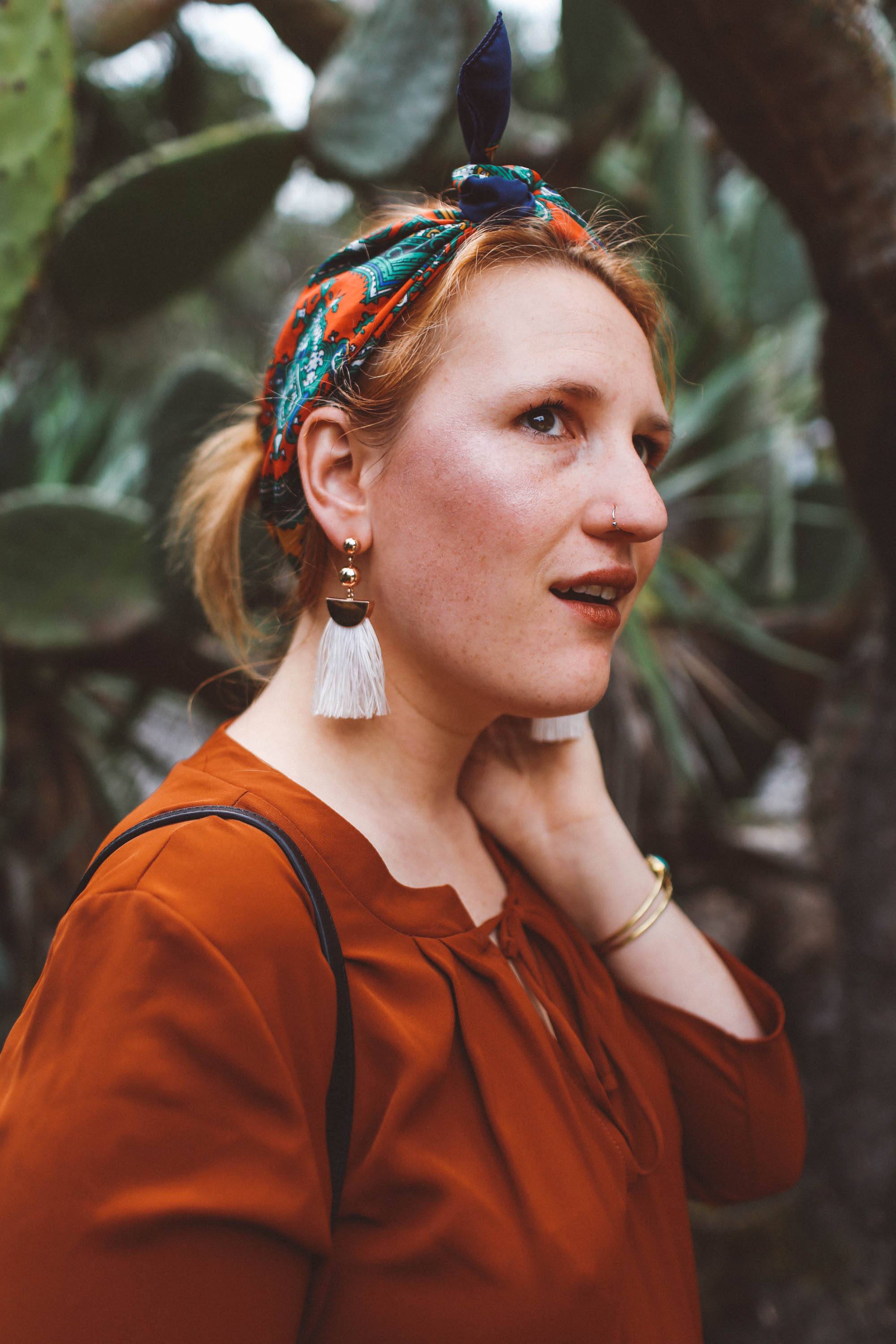 Thrifted dress (similar), Jcrew Earrings, Target Boots, Thrifed scarf (similar), Margaret Elizabeth Bangles, Sunglasses