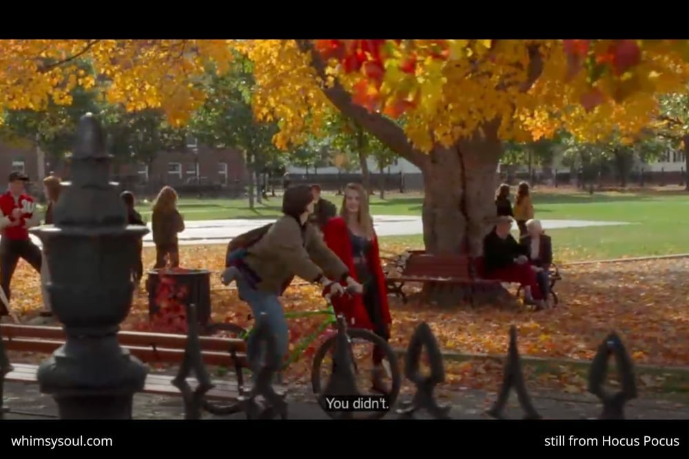 Hocus Pocus filmed many of the scenes on location in Salem over a span of 2 weeks (that’s why the fall foliage is popping off in every scene, they did it very quickly!!)