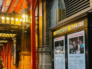 Kevin takes his dad’s polaroid camera for a spin outside Radio City Music Hall, making sure to snap a pic of the iconic concert hall known for its grand design and showy concerts.
