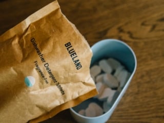 Same thing with dishwasher pods – we use Blueland for our dishwasher and they clean dishes well, and never leave guests wondering how much liquid to put in the machine.