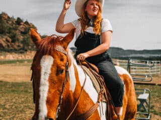 Hats aside, you’ll need closed-toed boots to ride. Horses are also dusty so I prefer to wear black leggings, denim jeans or overalls (anything that’s sturdy and can be easily washed). Lastly, you’ll want something with pockets that you can easily grab your phone out of for photos as you won’t be permitted to wear your purse or backpack on a horse.