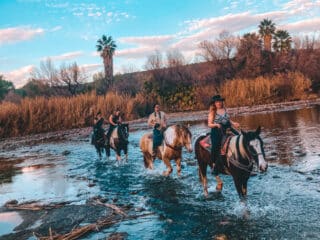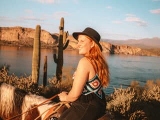 On top of watching the sunset behind the Bulldog Cliffs, something super unique to this Arizona horseback riding ranch is you get to cross the Salt River on top of your horse! I can’t explain how much like a cowboy I felt crossing that river on top of Dinero.