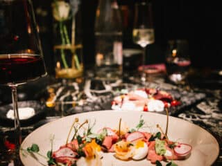 For your first round of drinks, order the beef 45 Cocktail which features gin, lime water, sparkling wine, sugar, seasonal herbs & fruits and it’s dang tasty.