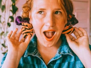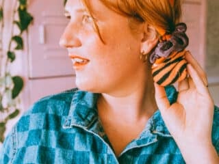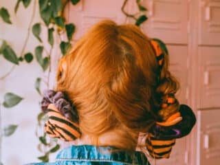 The only annoying thing about heatless sock curls is they can sometimes end up frizzy. I’ve found that wrapping my hair in a scarf or wearing a bonnet can help combat frizz. I also use a little hair oil after styling my heatless curls to help reduce frizz and that get a healthy shine to my hair.