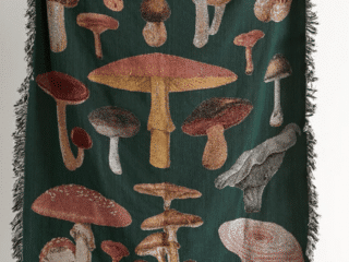 Woven throw blankets are superior and last long, making this throw blanket a winner in my book. The stunning mushroom design trend fits right into the cottagecore aesthetic and adds a bit of spunk to your space without overdoing it.
