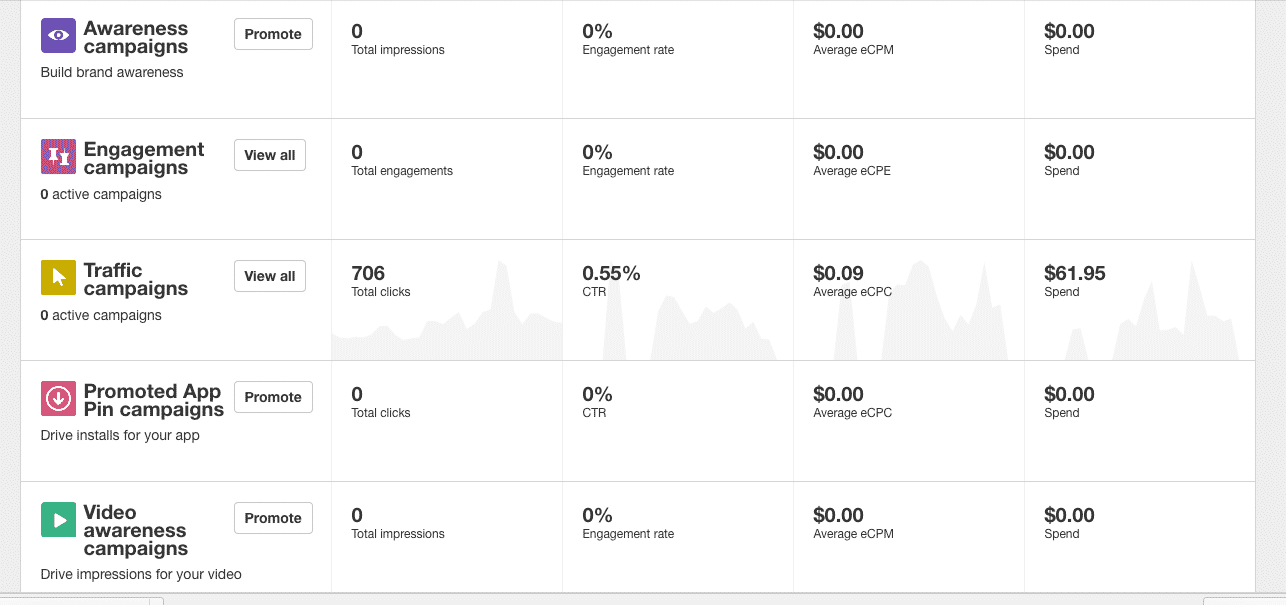 I recommend the “traffic to website” section as, after a bit of testing that goal seems to encourage the most Saves/Repins, and that’s my goal. More repins means the more traffic that pin will drive in the long term. That being said, play around with the goals to figure out what works best for you and your blog/company. Make sure to pay close attention to the budget section and only use “lifetime” budgets instead of “daily” so you don’t accidentally overspend!