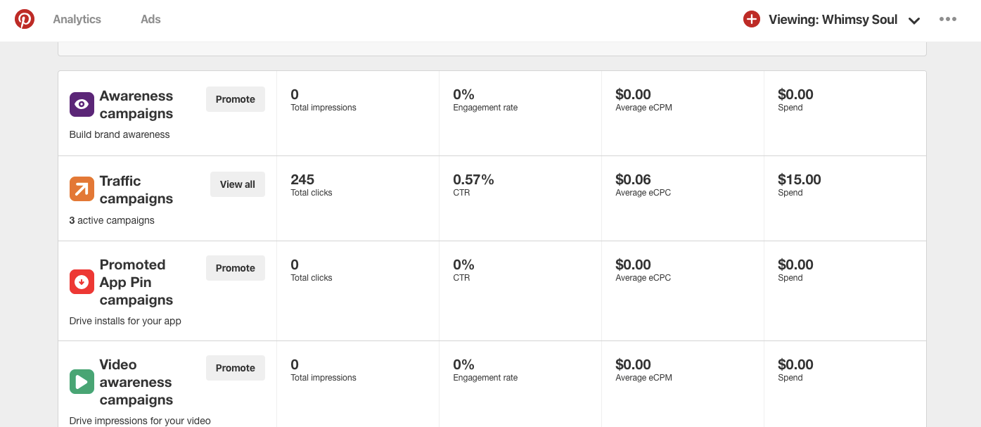 Remember how I mentioned that pins live forever? Because of this, they make extremely good pieces of social content to invest ad dollars in. Some of my most successful pins (as in, drive 25% of my blog traffic for a year) are pins that I have boosted for just $5 once. Seriously! Well designed custom pins that have thoughtful hashtags and descriptions and are targeted correctly in a promotion can be your secret weapon to getting millions of impressions on Pinterest.