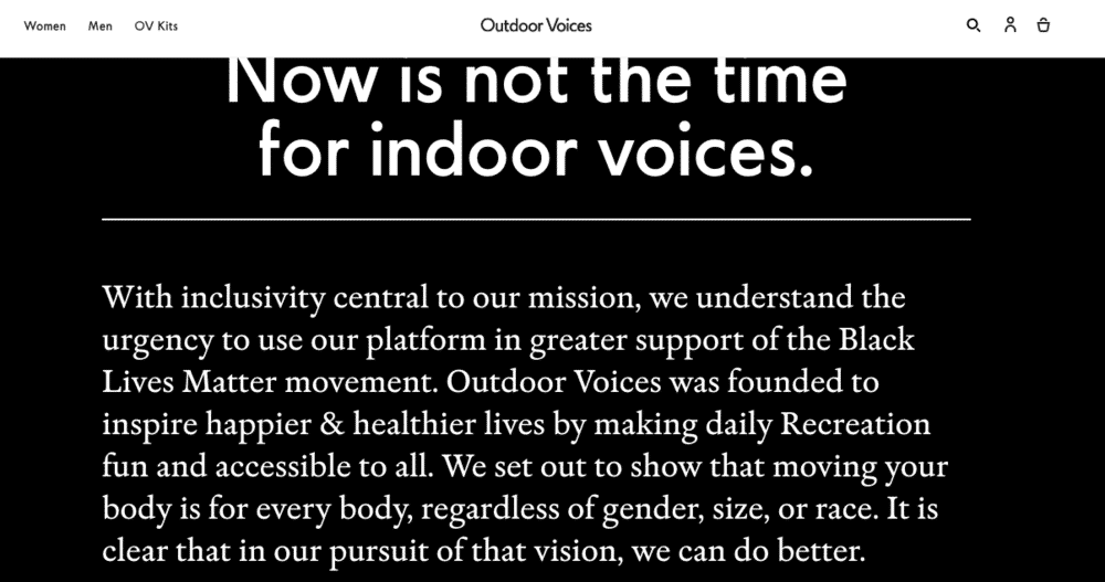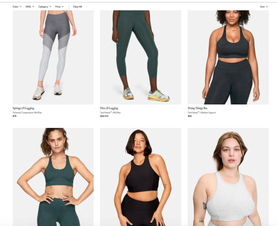 As I noted in my post last year, Outdoor Voices was doing kinda ok at making sure racial diversity in models was used on the site, but all the BIPOC models were still thin. I couldn’t find any plus-size folks anywhere on the site, white or not. I still can’t and it’s a year later.