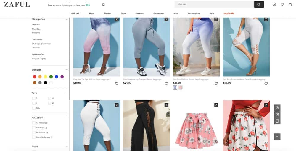 White, thin models are given the most visibility. Thin sizes are well stocked with many options and trendy styles. Black and fat models are hidden and not easily visible. Sizes above a 10 US (which is still technically straight size) are extremely limited and most items aren’t trendy.