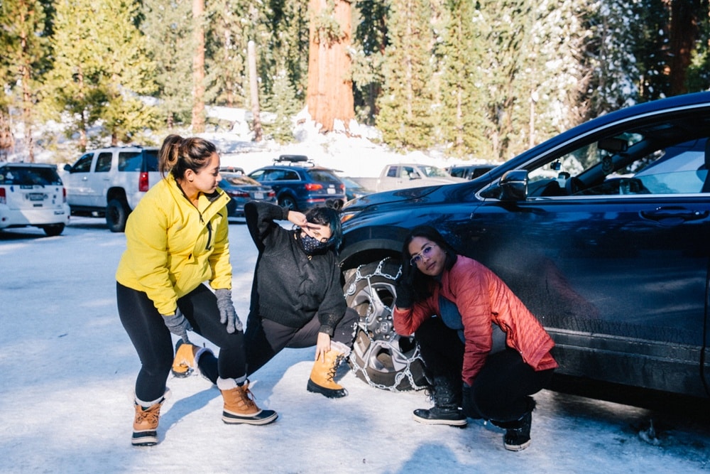 Assume nobody will help you. I’ve heard from friends who like to visit Lake Tahoe in the winter that it’s common for locals to hang out at chain install areas and put them on for you for $20. Wasn’t like that in the national parks. I’m sure if you get stuck you can nicely ask someone and they may help you, but come knowing how to install chains and don’t assume you can hire someone on the spot.