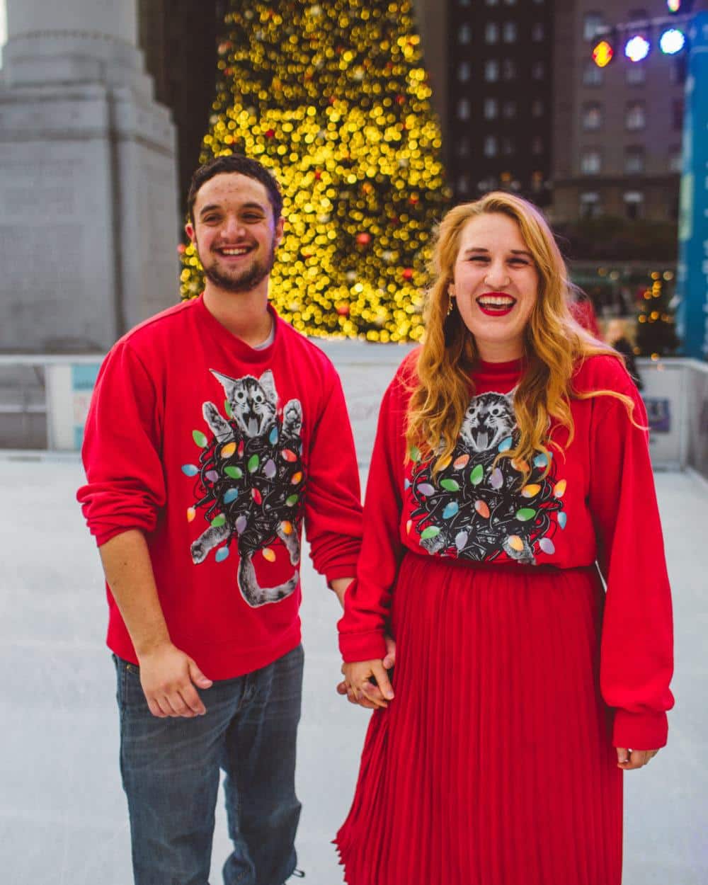 I hope this helps you find something fun for your guy for Christmas! Here’s a photo of my Husband and I ice skating at Union Square here in San Francisco last year. We’re basically nerds.
