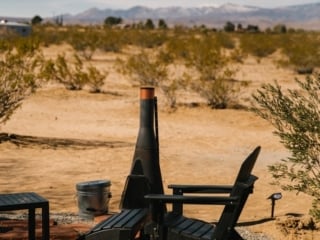 We spent every night stargazing in the hot tub after cooking dinner and making cocktails. We visited in March and it’s still windy and cold this time of year in San Bernardino county, so we didn’t fire up the outdoor fireplace. But it’s there for warmer evenings (faces west for happy hour while watching the sunset!)