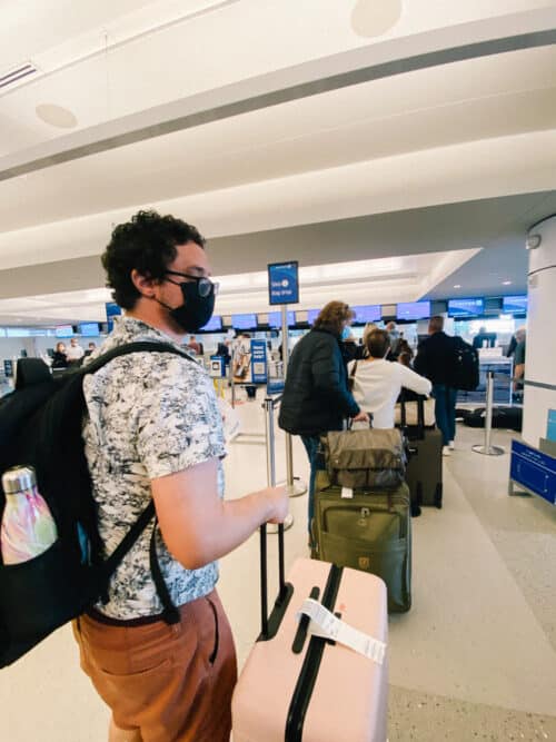 The extra screening happens at TSA, so you’ll need your boarding pass. Check-in your luggage, get your pass, and head to the TSA area. I have TSA pre-check but since I lost my ID, I had to go in the normal line. (Kara calls this the peasant line). This is a big reason why you need to arrive early, even if you have TSA pre-check.