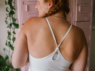 So, first I tried on the In My Feels Tank Top. This is a mix between tank tops and sports bras. I love to wear tops like this with high-waisted pants and skirts around the house, and I don’t have one that’s white so I thought this would be great.