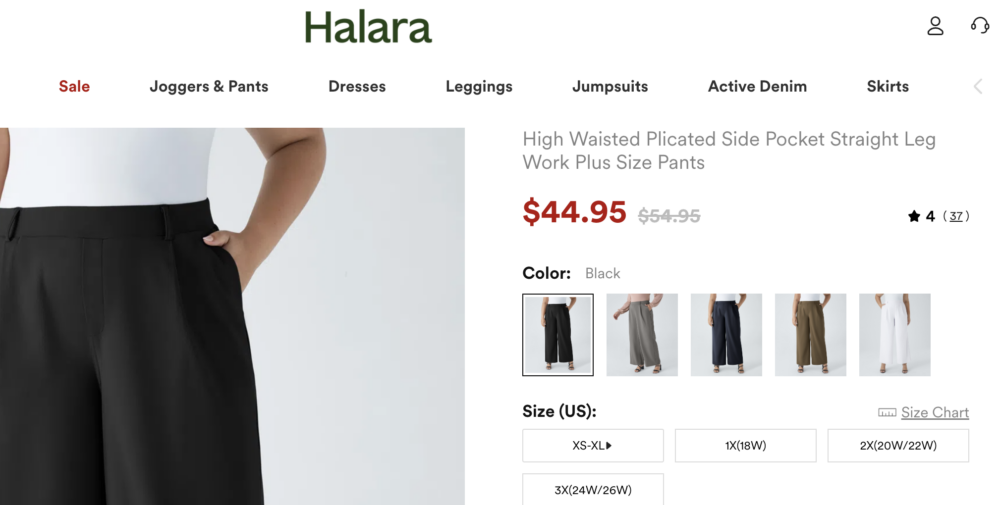 The Fat Tax is real here. Halara charges $20 more for plus-size leggings and around $8 more for plus-size bras. That’s not just a small markup—it’s discrimination.