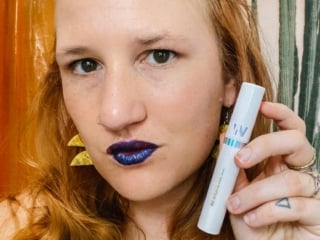 After you waited 60 seconds, use the tiny activator spray bottle to mist your lips. Almost instantly you’ll be able to feel and see the blue lip layer go stiff. It’s time to remove it!