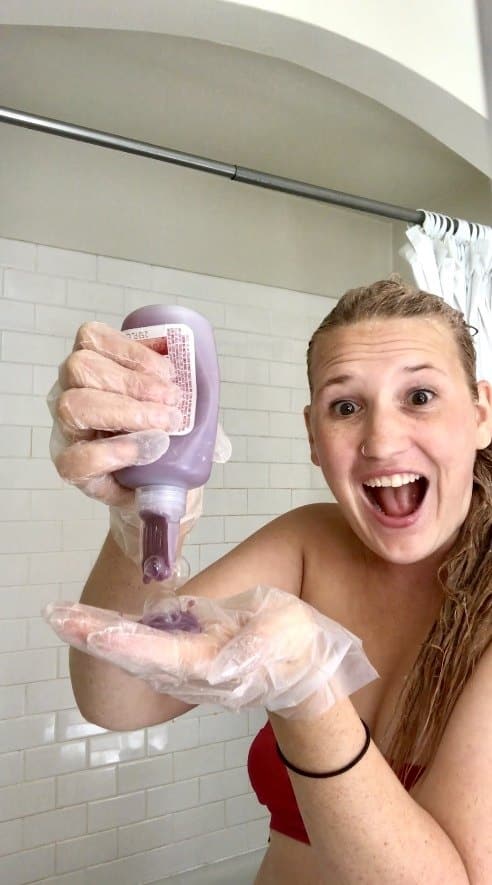 - Use a hefty amount of the #3 bottle on your whole head. This helps to condition and preserve the color. It also makes your hair super soft!