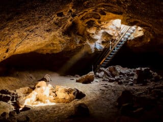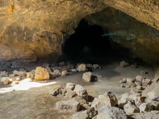 There’s over 1100 documented lava tube caves in the area, but new ones are being found all the time. The inside of the caves tends to be wide and tall with some areas being flat and easy to walk, while others are covered in sharp lava rocks.