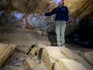 These are lava caves, which means the rocks can be super sharp. Don’t wear puffer jackets or anything that you would be super bummed out if it got ripped. Expect to be hunching over, crawling and crouching a lot as you navigate the cave so wear something that offers flexibility, along with sturdy closed toed boots.