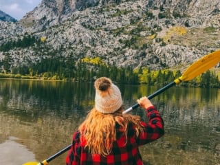 I love swimming, but kayaking is one of my favorite things to do in June Lake summertime or autumn! It’s a lake paddle, so easy for beginners.