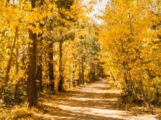 At some points, you’ll be rewarded with views of Carson’s Peak, the lake AND yellow trees, all in one go. On the other end of Hwy 158 between Silver Lake and Grant Lake, you’ll find some more stunning trees lining the roads.
