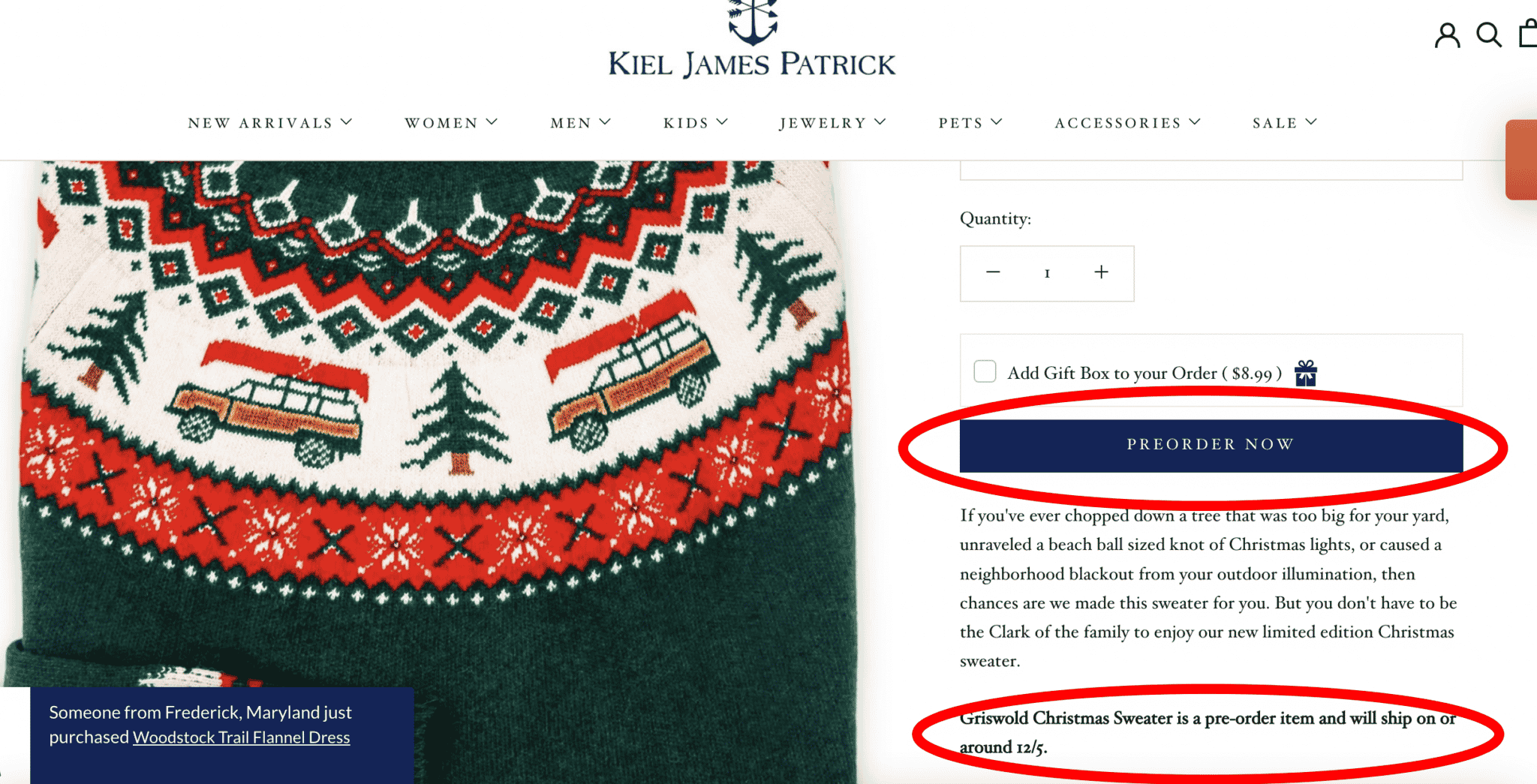 - Griswold Christmas Sweater: I grew up going off into the woods and cutting down a fresh tree, so this just screams Christmas to me. It’s my favorite Kiel James Patrick Christmas sweater for sure.