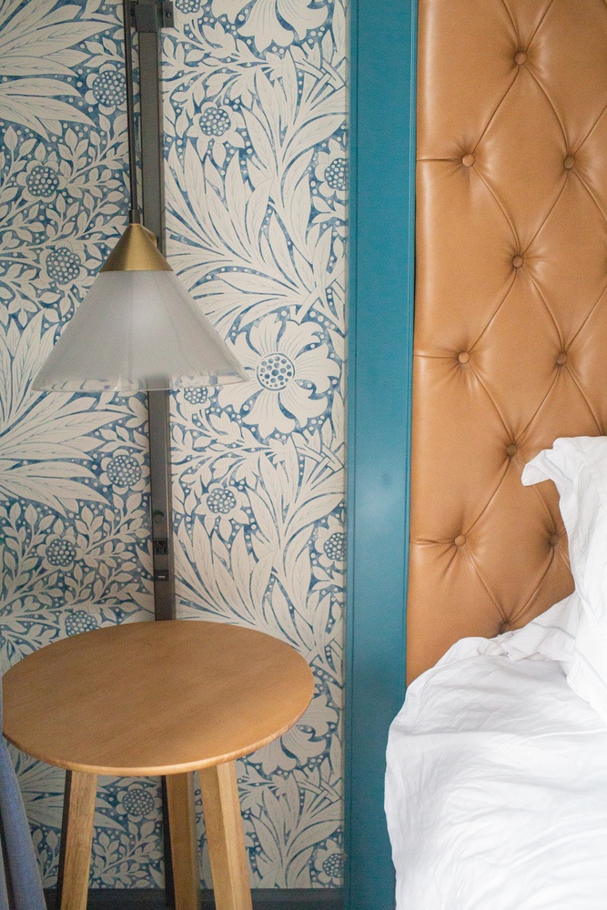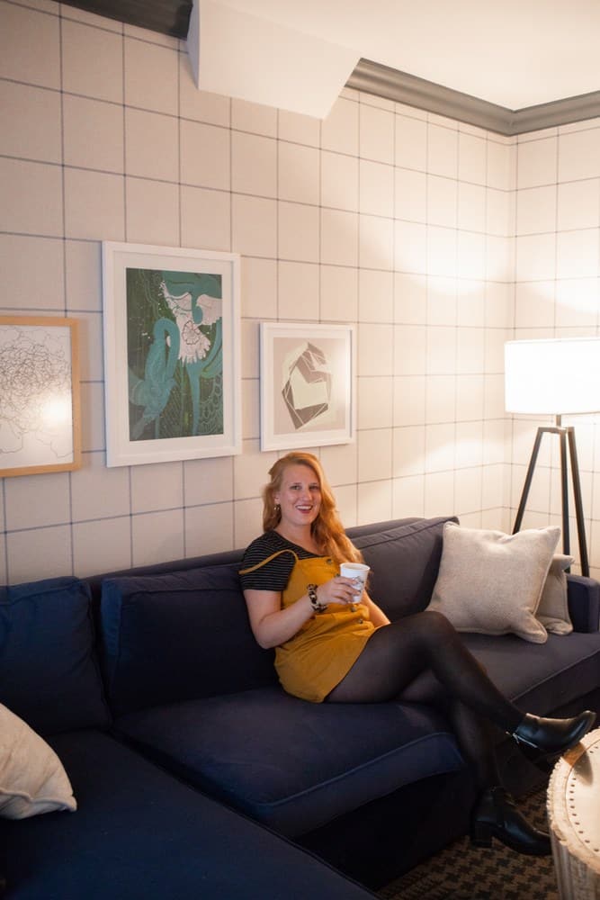 Kimpton Monaco Denver has fun pops of yellow decor in their lobby and stunning use of wallaper in the rooms. I also adored the large windows that brought in tons of natural light to our room. Kimpton serves California wine at happy hour each night from 5pm-6pm. (We thought it was funny that we came from California to Denver and drank local to us wine – ha!) They also serve small bites, we snacked on potatoes in a cream sauce the night we stopped by for drinks.