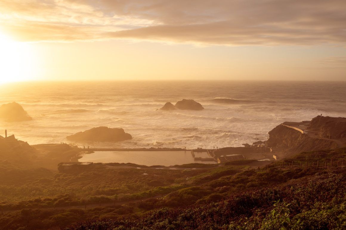 Ready to go on my favorite hike in San Francisco? This spot is fun to visit at any point in the day, but I really like coming at golden hour when the bay is filled with stunning hazy light. If you have extra energy, Mile Rock Beach below the labyrinth is extra beautiful to visit in the evening. All in all, you’ll only hike about 2-3 miles round trip.