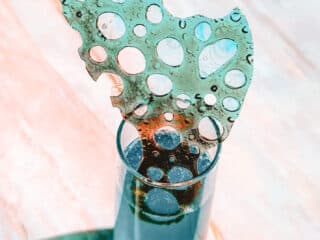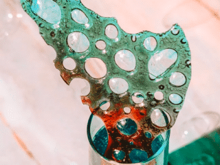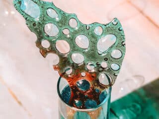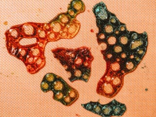 - Squeeze a few blobs of liquid glucose onto a baking sheet lined with parchment paper or a silicone mat. (Be sure to space them far apart or they will spread into one big blob in the oven!)