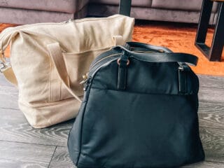 The large Lo and Sons weekender Catalina is a bit hard to carry long distances when you pack it to the brim as we did. But it comes with a padded strap and has handles to help offset the weight on your body. And, it can fit literally everything you need, but in one bag. Together, I think the OG 2 and Catalina Deluxe are just the right size for two people on a weekend trip together.
