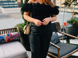 I highly recommend you use a service like Nuuly to rent outfits. I rented a pair of Collette leather pants that I kept since I loved them so much, along with a top I wore at the cocktail party and a glam dress I wore for the awards ceremony.