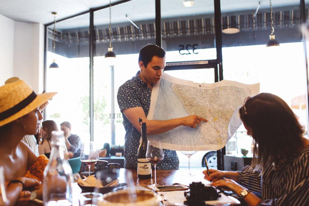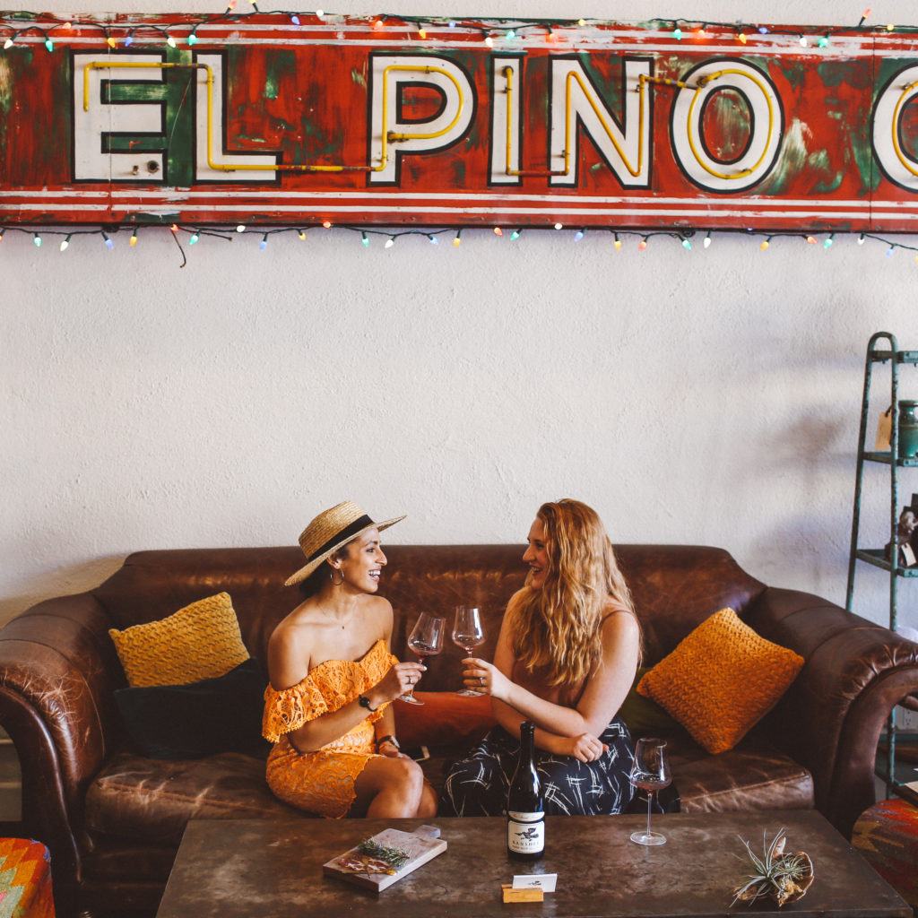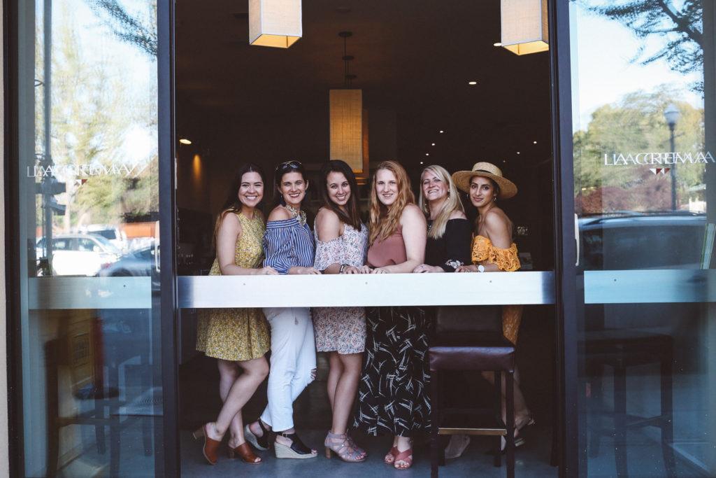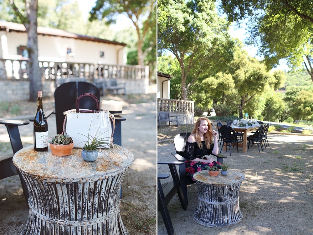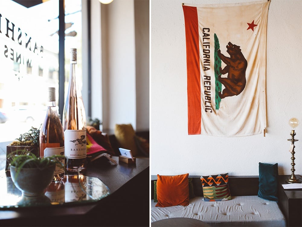 1:30pm: Next up, to Banshee. This one we had to cross the square for, which I loved because the Healdsburg square is so charming – lots of palm trees and makes for a great place to just sit and people watch in the afternoon. I also swooned over the decor at Banshee. From the colorful rugs to fun chairs, I wanted to steal everything to bring into my own place. Our tasting guide was uber charming and friendly. At one point he even wiped out a map to explain to us the different regions their grapes were grown and how that changes the wine. Every time I visit wine country I learn something new! I’m not the biggest rosé fan, but the other ladies loved the Banshee rosé and almost everyone brought home a bottle. So, if rosé all day is your motto, head here!