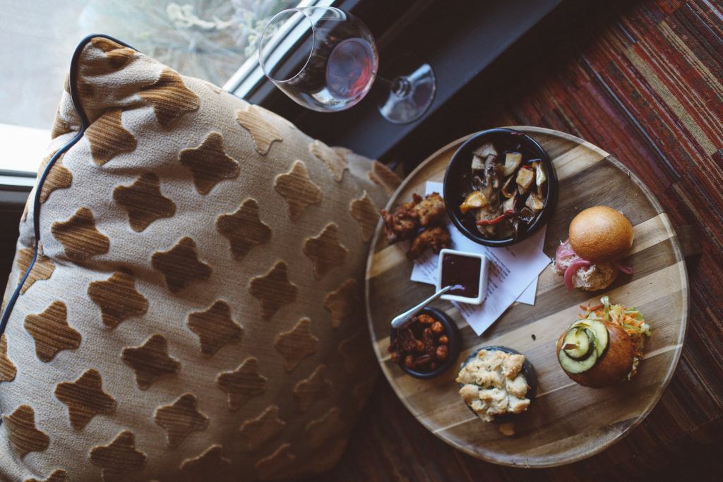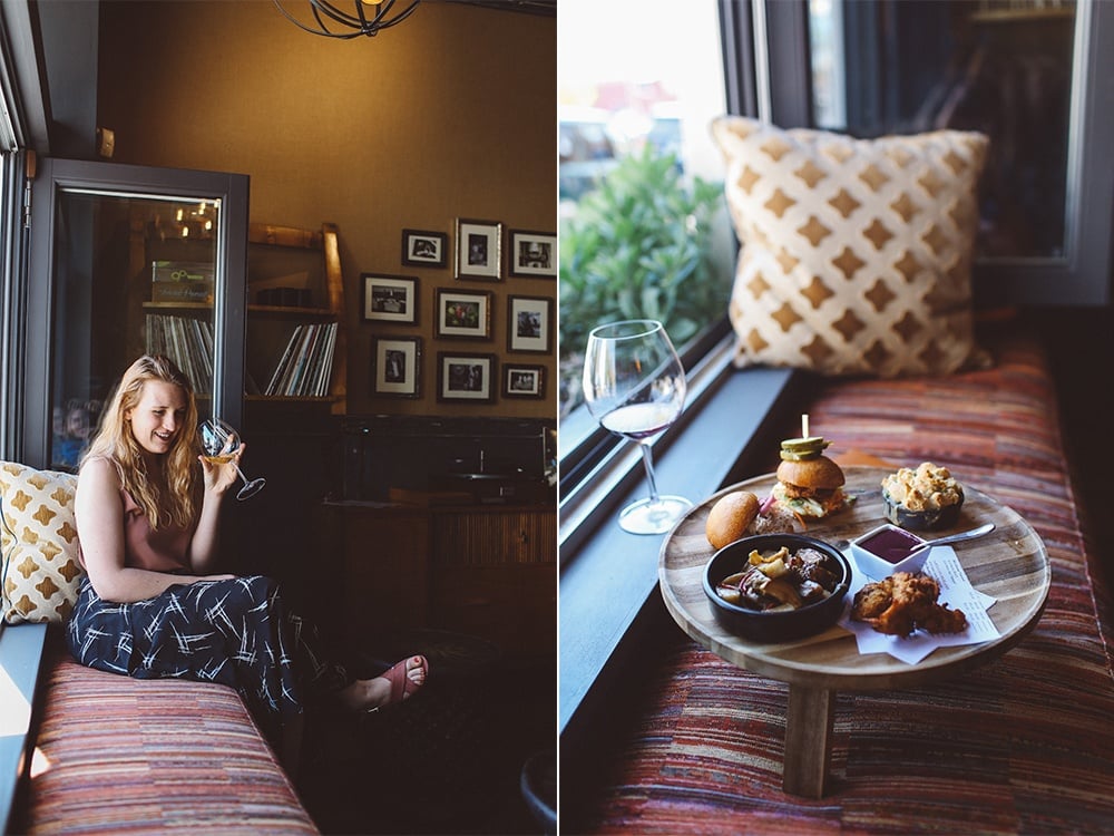 11:45am: We all met in our room and the motley crew headed out to Siduri. I thought it was going to be across the square or something, but nope, literally a couple steps to the left of our hotel. Score! I think Siduri had my favorite wine of the day. I’m a big fan of a good cab or pinot, and they make great ones that are perfectly spicy. Their tasting room is decorated in a fab boho hipster sort of way. You’ll find a record player in the corner and plenty of colorful stools next to the window seat which boarders a huge window that is kept open thought the day to let in sunshine and fresh air. Here, we were served some bites from the kitchen, which we devoured because they were tasty and we were starving!