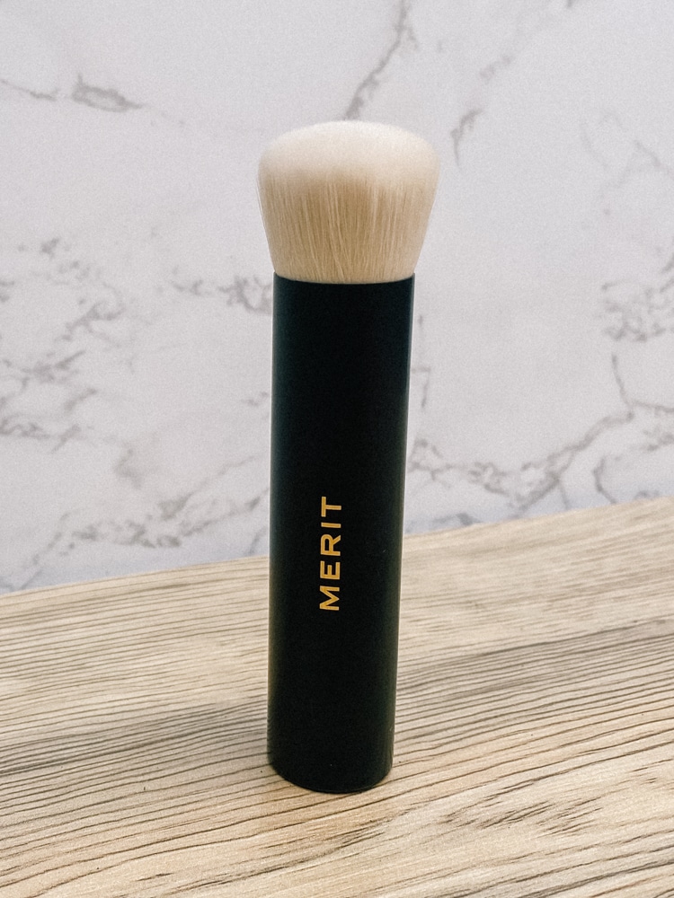 The Merit blending brush transformed all the products I used. From the bronzer to the blush and concealer, this brush melted everything into my skin and made me look photoshopped.