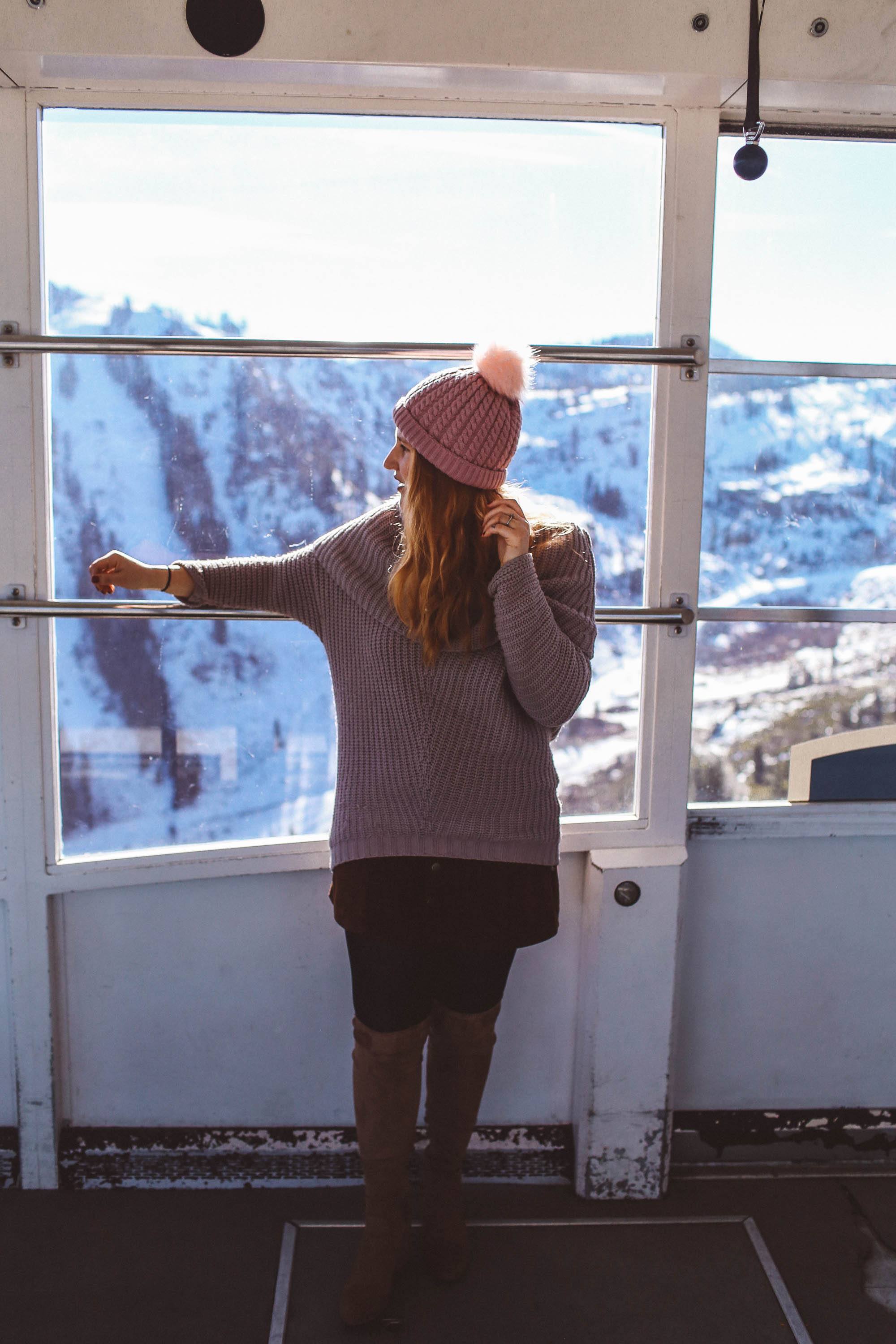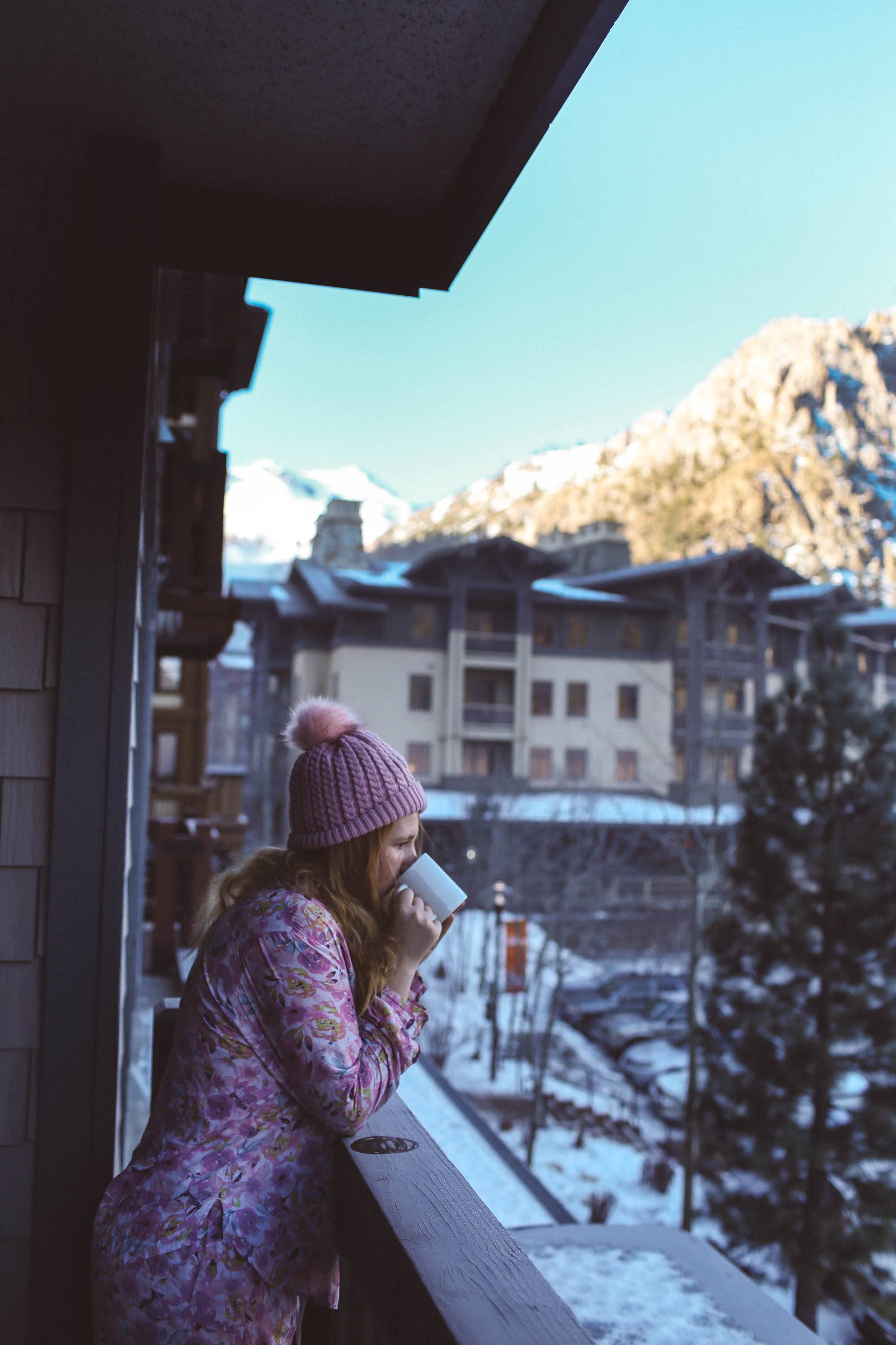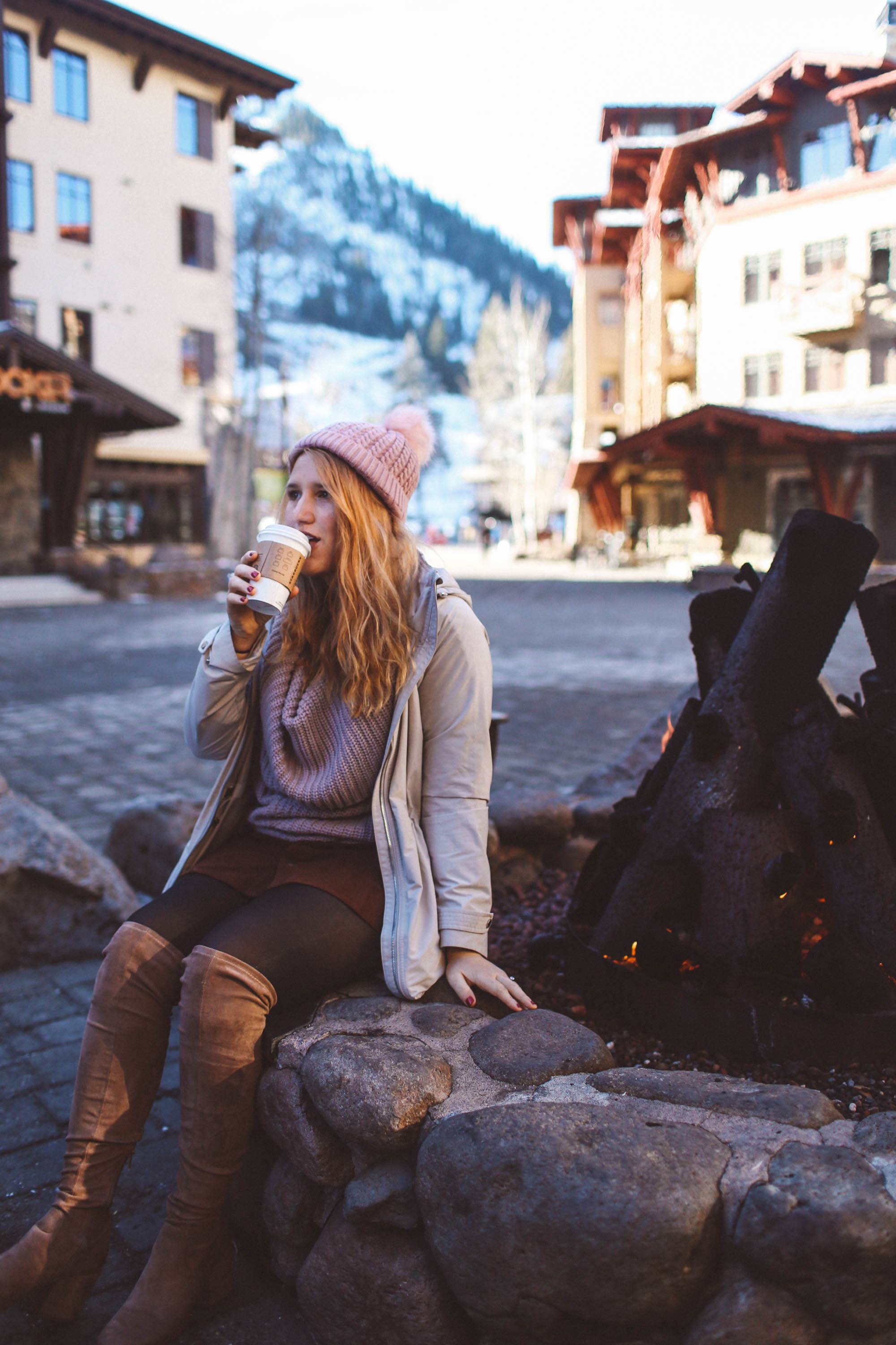 We spent our first evening wandering the village, soaking in the views. We grabbed beers at Rocker and sat outside under the mountain and people watched. That evening was pizza at Fireside and cozying up next to the fireplace in our room watching Christmas movies. The next morning was another sunny one. We grabbed coffee and sat next to one of the outdoor fire pits, watching the village slowly come to life as more and more people came into the ski for the day. I wore a chunky sweater paired with tights, a midi skirt and over the knee boots – one of the few people not dressed for the slopes, but nobody seemed to care. I was a little worried there would be a snooty air about, but the culture in the valley is welcoming and friendly.