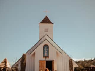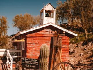 You’ll kick of your Apache Trail drive at the Superstition Mountain Museum and the first thing you’ll see is a small white church. Inside that white church is a large cardboard cutout of Elvis Presley surrounded by photos of western movie productions. It’s kitschy and cool at the same time.