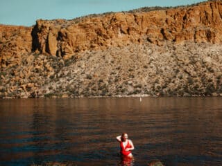 I had my swimsuit in the trunk so I pulled it out and went for a very cold (yet totally refreshing) dip in the lake. I highly recommend you set aside 30 mins to do this! I found my hair dried really fast in the hot Arizona sun.