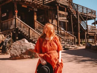 Tortilla Flat feels a bit like you walked back in time. It’s a small strip of Old West style buildings tucked on the side of the Apache Scenic Byway. Here you will find a western saloon covered in $100k worth dollar bills and featuring saddle bar stools, a cute general store, a gift shop, and a tiny historical Arizona museum. It’s technically a town – THE smallest town in Arizona with just 6 people living there.