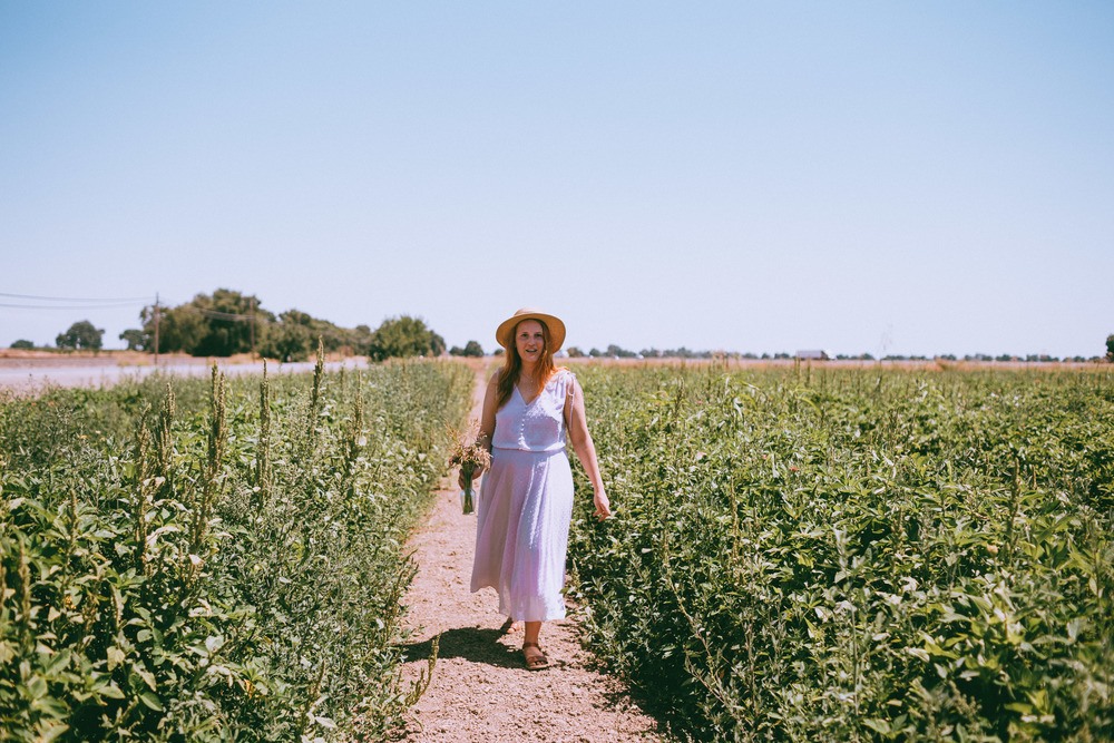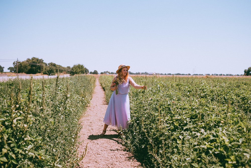The thermometer read 94 degrees as we rolled up to the Mezger Family Zinnia Patch outside Woodland, California. There were a few people in the flower field picking blooms and gathering together bouquets and after a few minutes of waiting we were able to take our turn with one of the clippers the family leaves out for visitors.