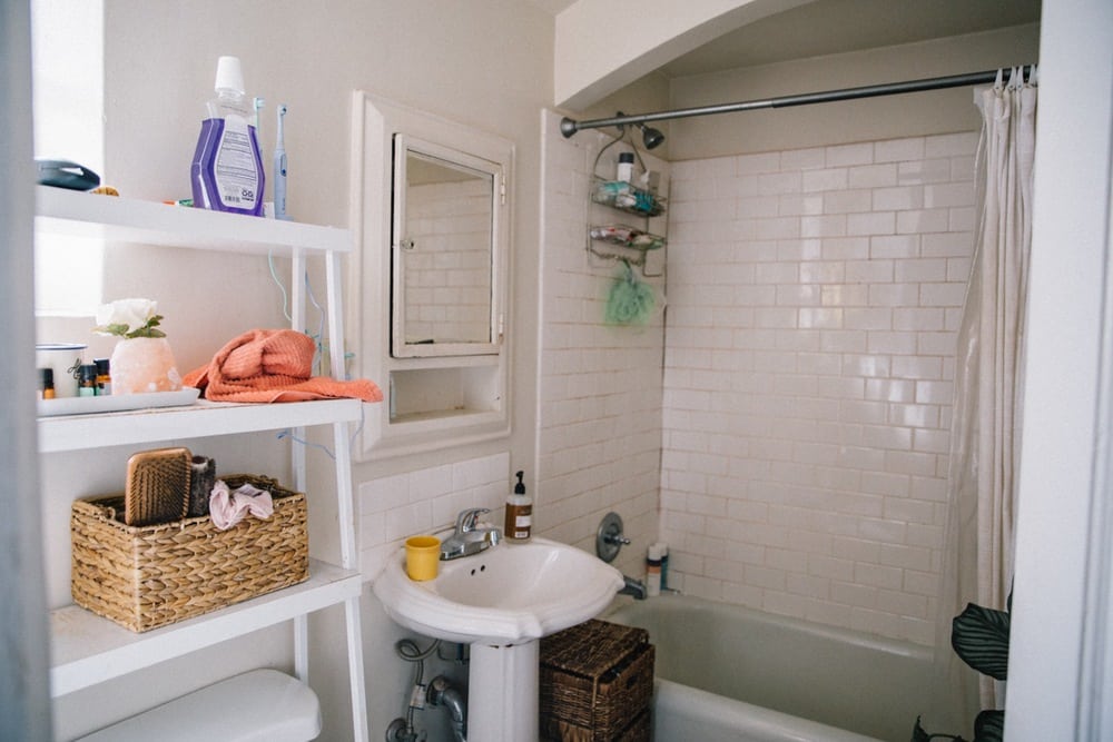 As you probably know if you follow me on Instagram, we renewed our lease for another year here (bless up getting a rent reduction) and while our bathroom was ~fine~ before, I decided it was finally time to make it the renter studio bathroom of my dreams.