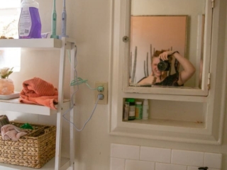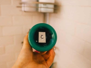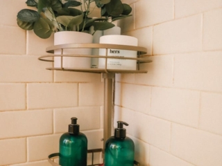 First, I bought green matching bottles to put shampoo, conditioner, face wash and body wash to eliminate the clutter. I just refill these when they’re low. I then was really stretch about what I kept on the caddy and what I didn’t keep. Razor, loofa, hair mask and comb could stay. But my collection of 20+ random other hair and body things had to go into storage. I still use those products when I need them, they just no longer live in my shower taking up space.