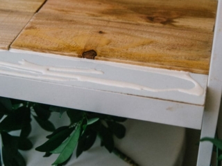 Hey, it worked! My arms were sore AF from manually sawing about 12 pieces of wood but it was really easy. I cut the pieces to my exact dimensions and used wood glue to cover the top of the shelf to turn it into a unique piece of furniture with mismatching wood. I love it, it really helped to tie the cool new shower into the other half of the bathroom.