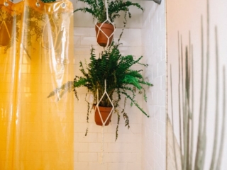 The biggest question I get is: do you bump your head on the plants? Nope! Our bathtub ceiling is pretty high and I’m not crazy tall (5’5″) My husband is about 5’9″ (though he’ll tell you 6 feet ha!) so we can both comfortably stand under the plants.