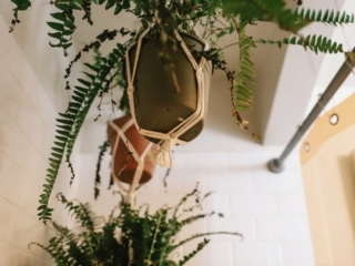 I learned from YouTube how to install these ceiling hooks and felt damn good after learning that skill. (You can also use less intrusive hooks like these if you are retrained by your lease.) I bought a bunch of macrame cord and made DIY plant hangers for the ferns. I was worried I would kill them but it’s been a couple of months and they’ve just started sprouting new leaves so i think I did it!!