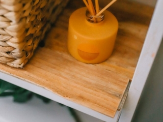 I then styled it with some chic thrifted vases and swapped the old candle for cute “Golden Hour” diffuser from PF Candle Co, which smells amazing by the way. I’m obsessed with candles in large rooms but a diffuser like this is perfect for small bathrooms. Now the bathroom always smells like wood and plants.