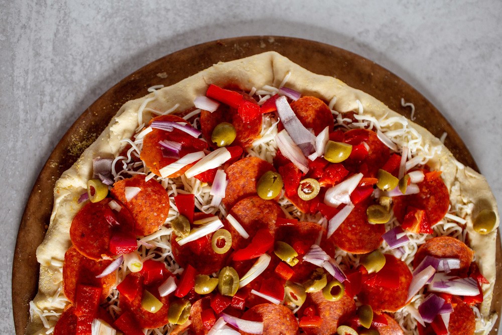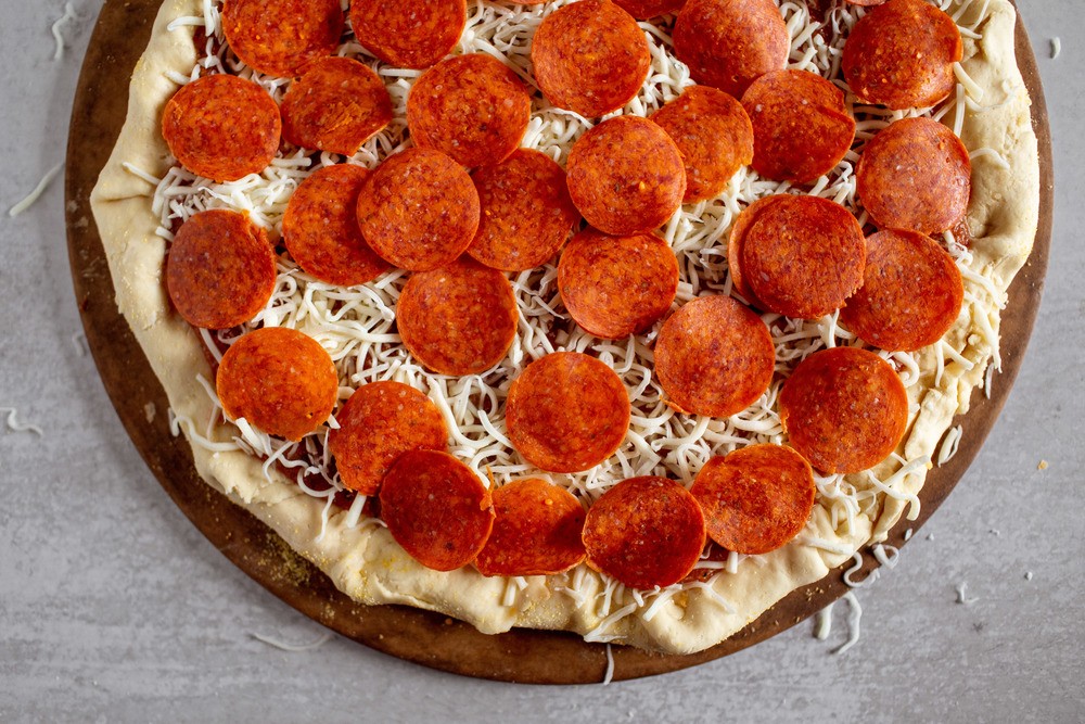- Add pepperoni and your remaining toppings on the pizza.