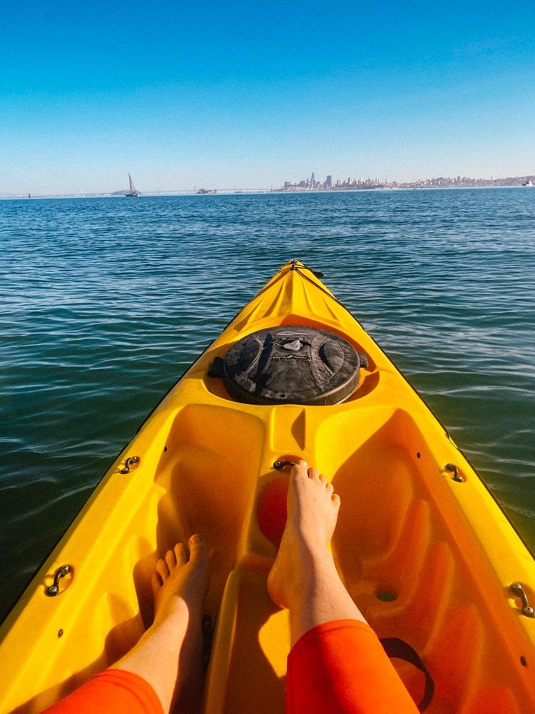 It’s not advisable to go kayaking in San Francisco bay waters unless you are an advanced kayaker or with a group. That’s because the waters can be super choppy and there are a LOT of boats in these open waters, including fast-moving sailboats, cruise ships and other large AF cargo ships. I even once saw a whale out there while on a cruise, I don’t want that when I’m in a kayak!