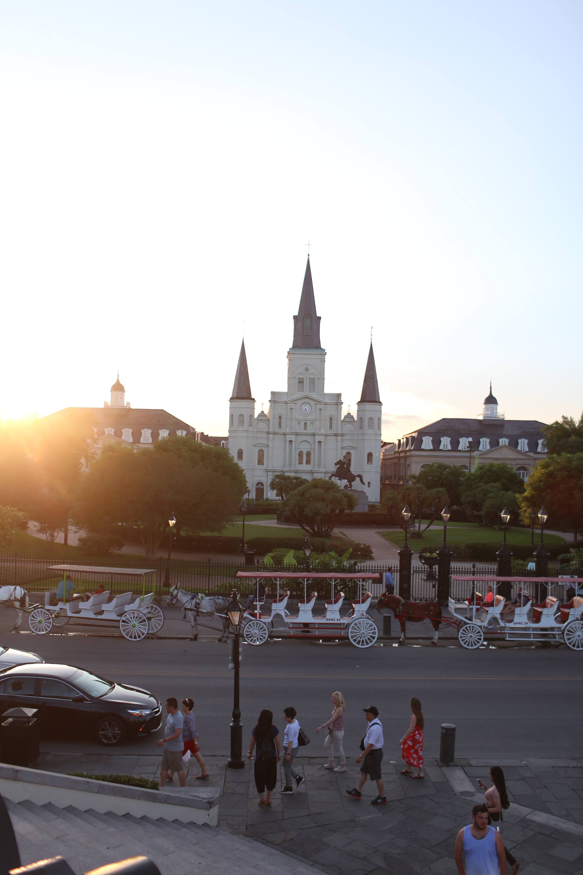 Obviously, the French Quarter is the place to be. People travel all over the world to walk among the streets that almost feel like Paris. The streets are narrow, but beautiful and deserve at least a whole day wandering them, hopping from one restaurant to the next. Ha! St. Louis Cathedral is smack in the middle of the French Quarter and borders a fun plaza with trees and benches to sit on. Make sure to spend some time here, too!